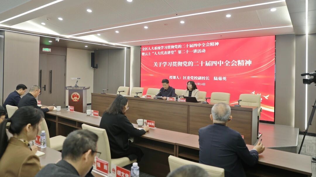 现场,区委党校副校长陆茹英作了关于学习贯彻党的二十届四中全会精神的专题授课。陆茹英从深刻把握全会召开的时代背景和重要意义、精准领会全会精神的核心内涵和重要部署、扎实推动全会精神落地见效的实践要求等三个方面,对全会精神进行了系统阐述和深入解读。