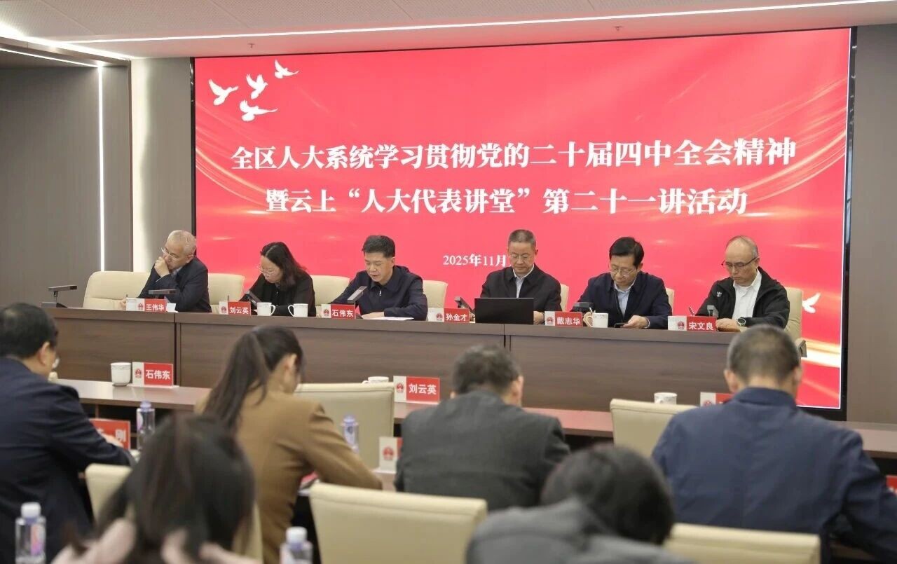 11月14日上午,全区人大系统开展学习贯彻党的二十届四中全会精神暨云上“人大代表讲堂”第二十一讲活动。区人大常委会主任石伟东主持活动,区人大常委会领导孙金才、刘云英、戴志华、王伟华、宋文良参加活动。