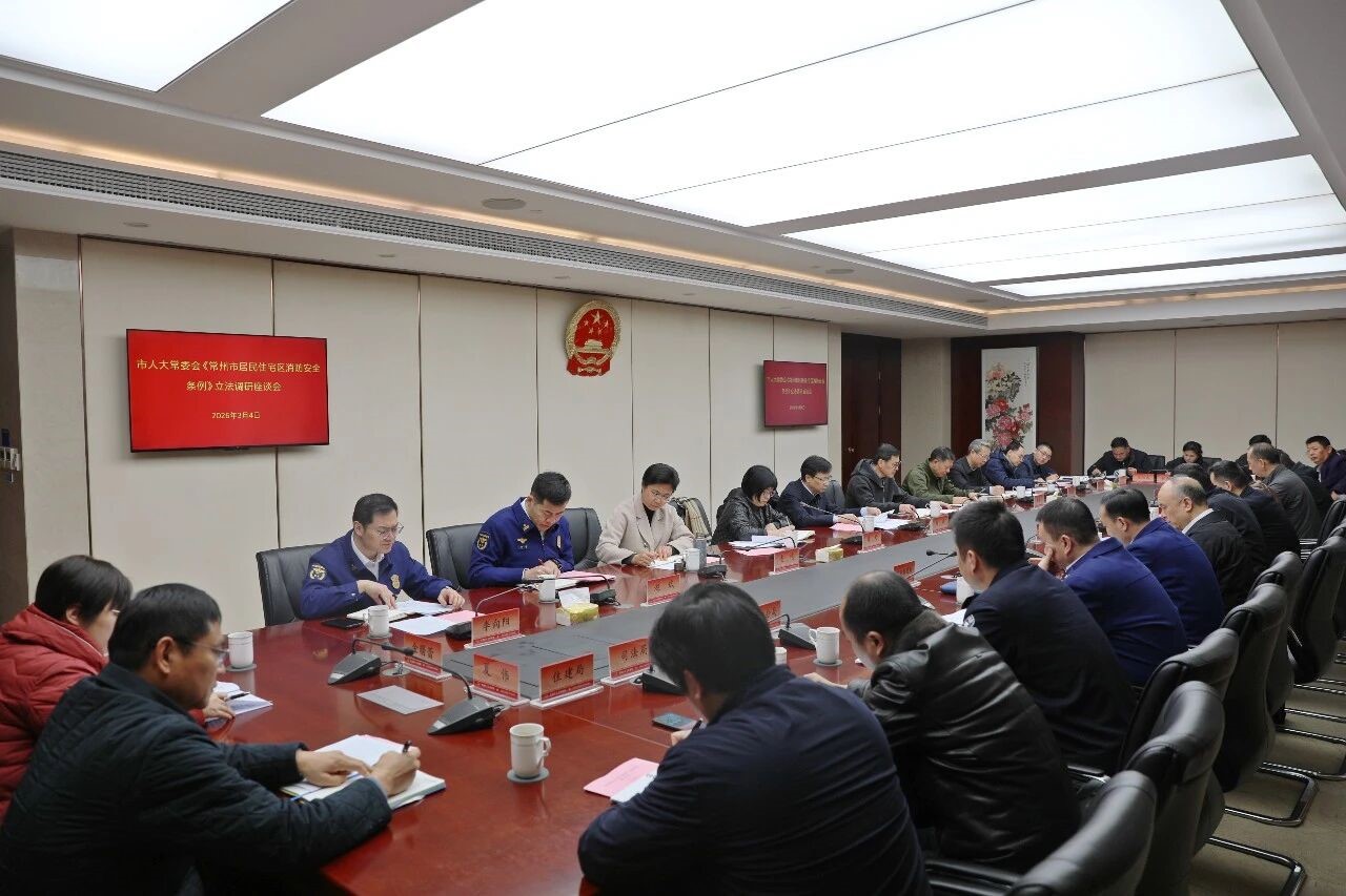《常州市居民住宅区消防安全条例》是市人大常委会2025年度正式立法项目。座谈会上,调研组一行详细了解了我区居民住宅区安全消防工作情况。我区目前共有居民住宅小区331个,将居民住宅区消防安全纳入基层治理重点工作,积极构建“政府统筹、部门协同、镇街主责、物业落实、居民参与”的管理体系,建立完善常态化联合检查、隐患闭环整改、应急联动处置机制,累计开展居民住宅区消防安全专项整治23轮,整改各类隐患1.2万余处。
